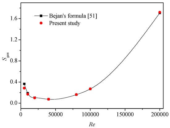 Validation of present entropy generation model with Bejan’s formula [51].