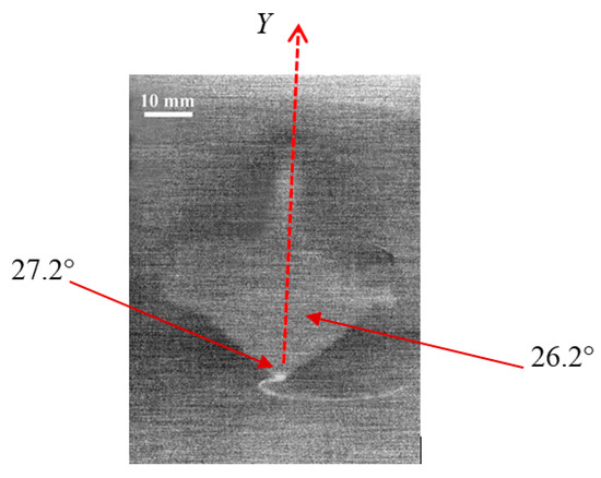 The third series of experiments was performed with a coin (m = 6.250 g; diameter D = 25.9 ± 0.05 mm; thickness b = 1.7 ± 0.05 mm; possessing two holes with a diameter of d = 3 ± 0.1 mm, drilled symmetrically at the distance 2l = 11 ± 0.05 mm one from another, as depicted in Figure 6) rotated on a flat horizontal surface around the vertical axis. In this series of experiments, a more complicated rotation was observed: the coin switched the location of holes between two symmetrical orientations admitted by the vertical axis of rotation, as shown in Figure 6A,B. The mechanism of this switching is beyond the scope of our paper. However, consider that the orientation of the coin, depicted in Figure 6A, corresponds to the maximal moment of inertia I of the coin relative to the vertical axis. This kind of rotation was registered for the angular velocity , whereas the spatial orientation of the coin depicted in Figure 6B (that is, the minimal I respective to the same axis) took place for . In both of these experiments, the coin chose the free axis of rotation. The difference between the momenta of inertia of the coin, oriented as shown in Figure 6A,B, equals , where m0 is the mass of the “disk” filling the hole and l = 5.5 mm is the distance from the symmetry axis to the hole center. The same difference was related to the moment of inertia of the non-drilled coin where r = 1.5 mm and R = 13 mm are the radii of the hole and the coin, respectively.