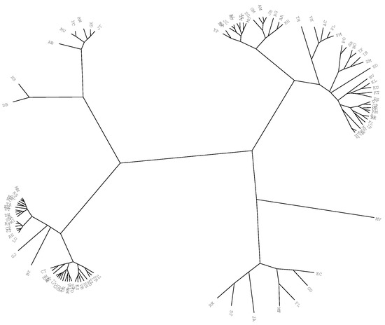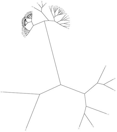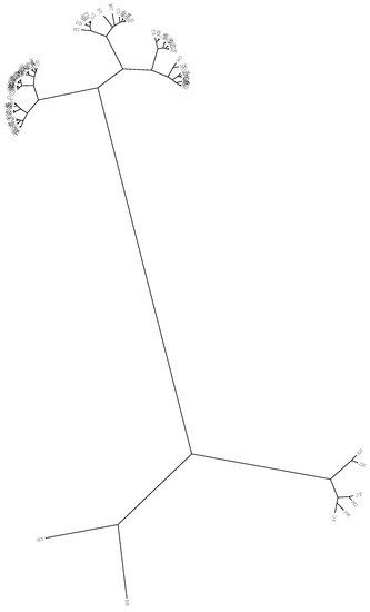 - Sokal, R.R.; Rohlf, F.J. The comparison of dendrograms by objective methods. Taxon 1962, 11, 33–40. [Google Scholar] [CrossRef]