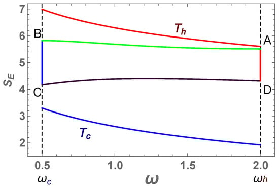 where m is the mass of the system and and are the momentum and position operators. All thermodynamical quantities will be intensive; i.e., normalized to the number of particles. In the macroscopic Otto engine, the internal energy of the working medium during the adiabatic expansion is inversely proportional to the volume. In the harmonic oscillator, the energy is linear in the frequency [37]. This therefore plays the role of inverse volume .