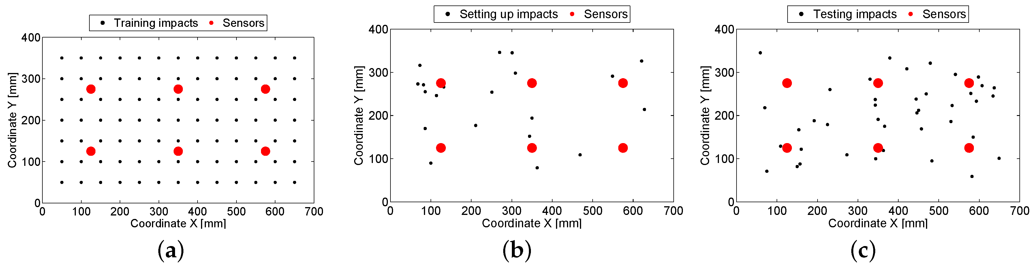 | Reference | Algorithm | Plate Size (mm) | Number of Sensors | Number of Training Impact Points | Area Error (%) | Force Error (%) |