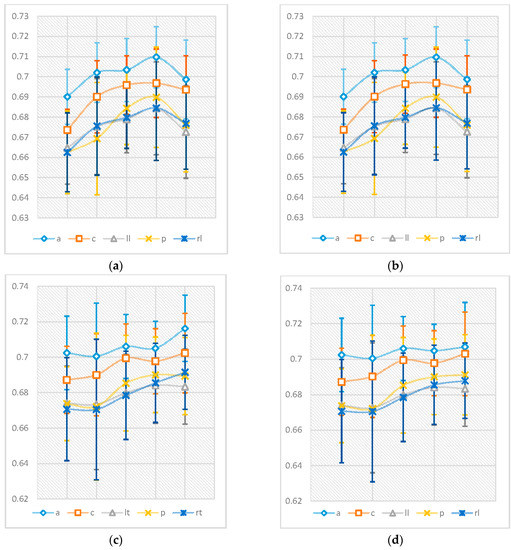 Together with the embedding dimension, the time delay l is also associated with the dynamics of the signals under study and thus, if the time interval between data points is small, fast changes can be analysed. Additionally, if the time intervals between samples are large, then only slow changes can be taken into account. There is evidence [34,35,36,51,55] showing that most information can be extracted using a time delay value if l = 1. Therefore, this resulted in the use of l = 1 in this study [55].