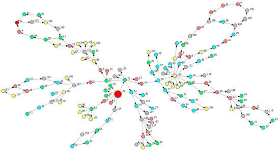 Including the 140 provincial industries of the five provinces of South China, we study their cross-province interactive relationship. Rooted on a node of GD, Figure 8 is rooted in the industry of maximal information outflow while Figure 9 is rooted in the industry of minimal information outflow.