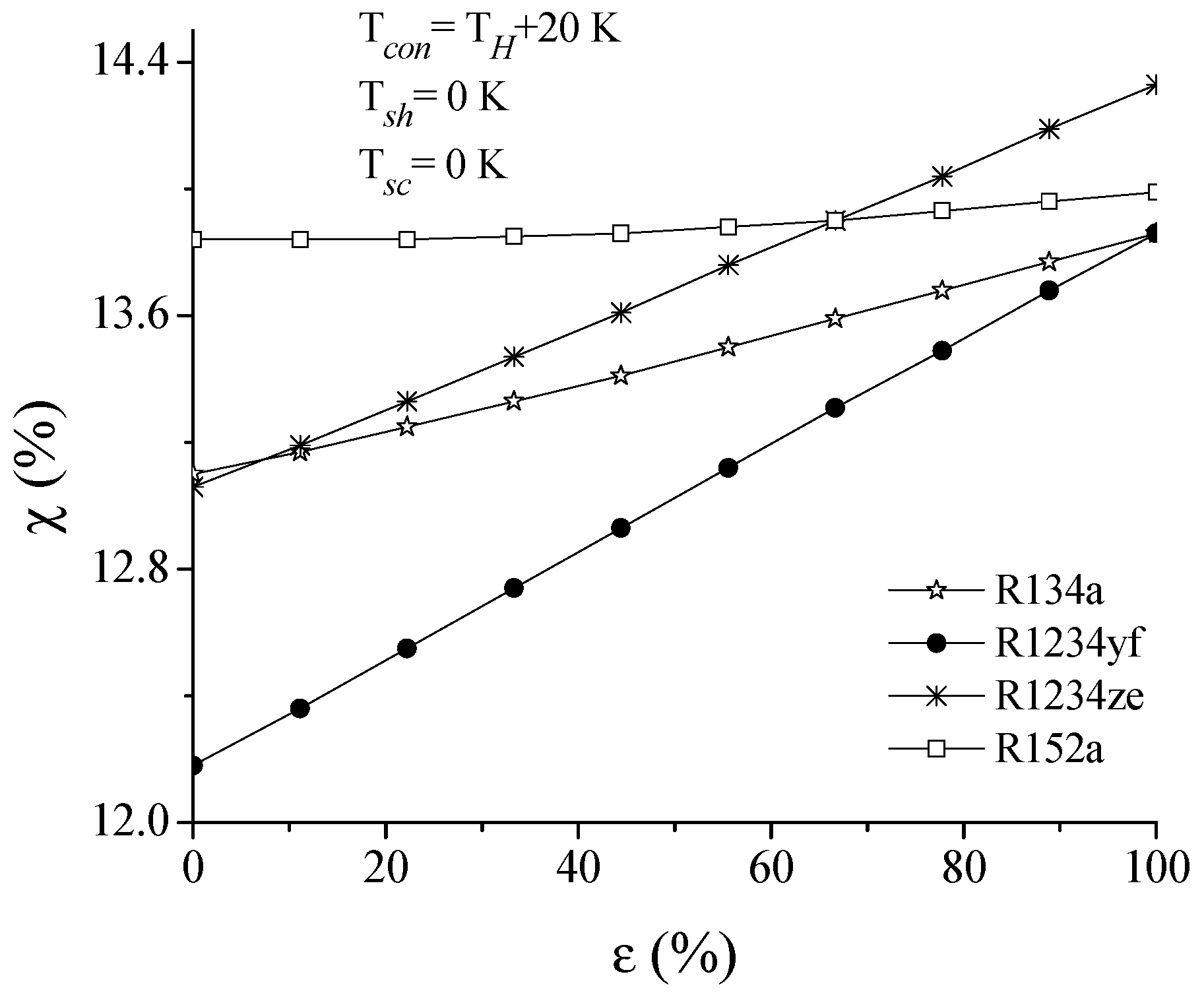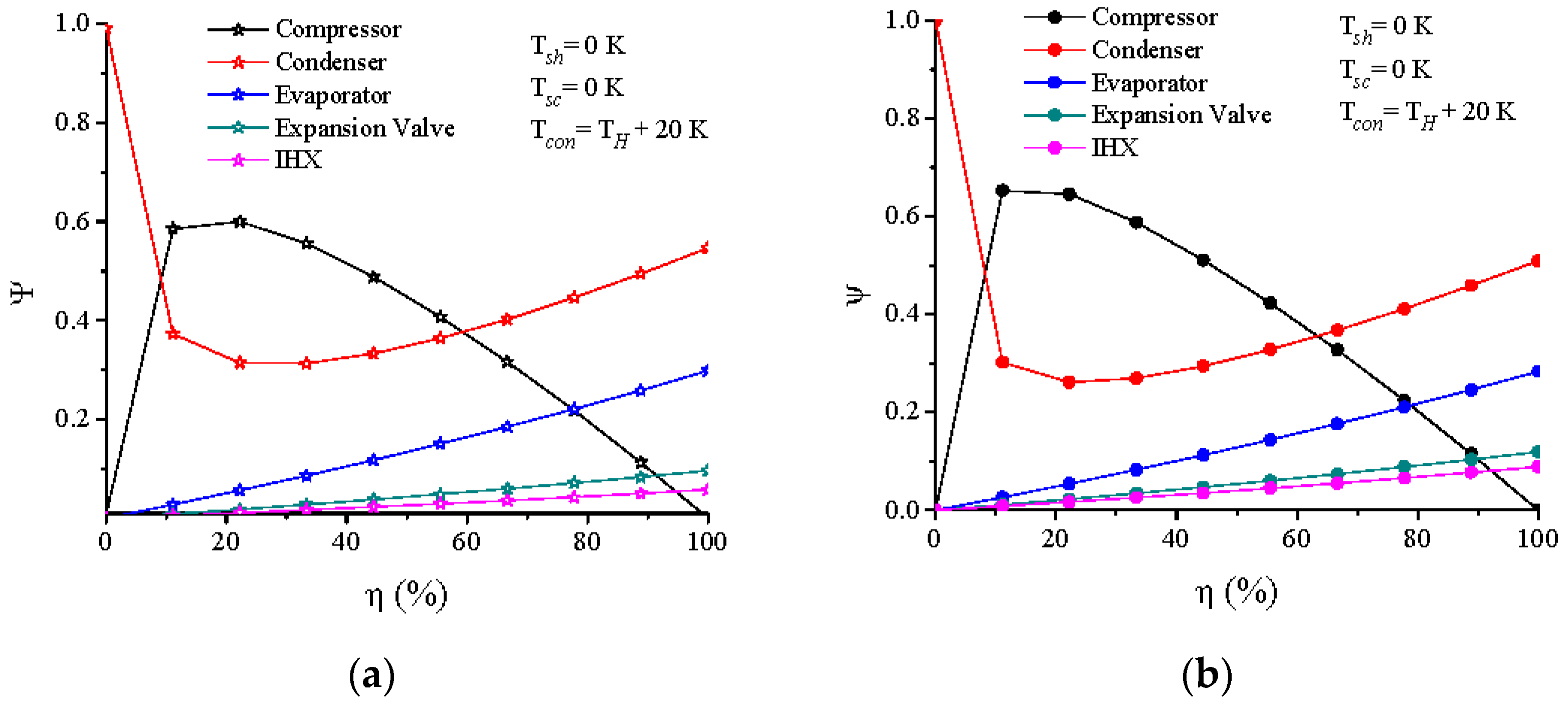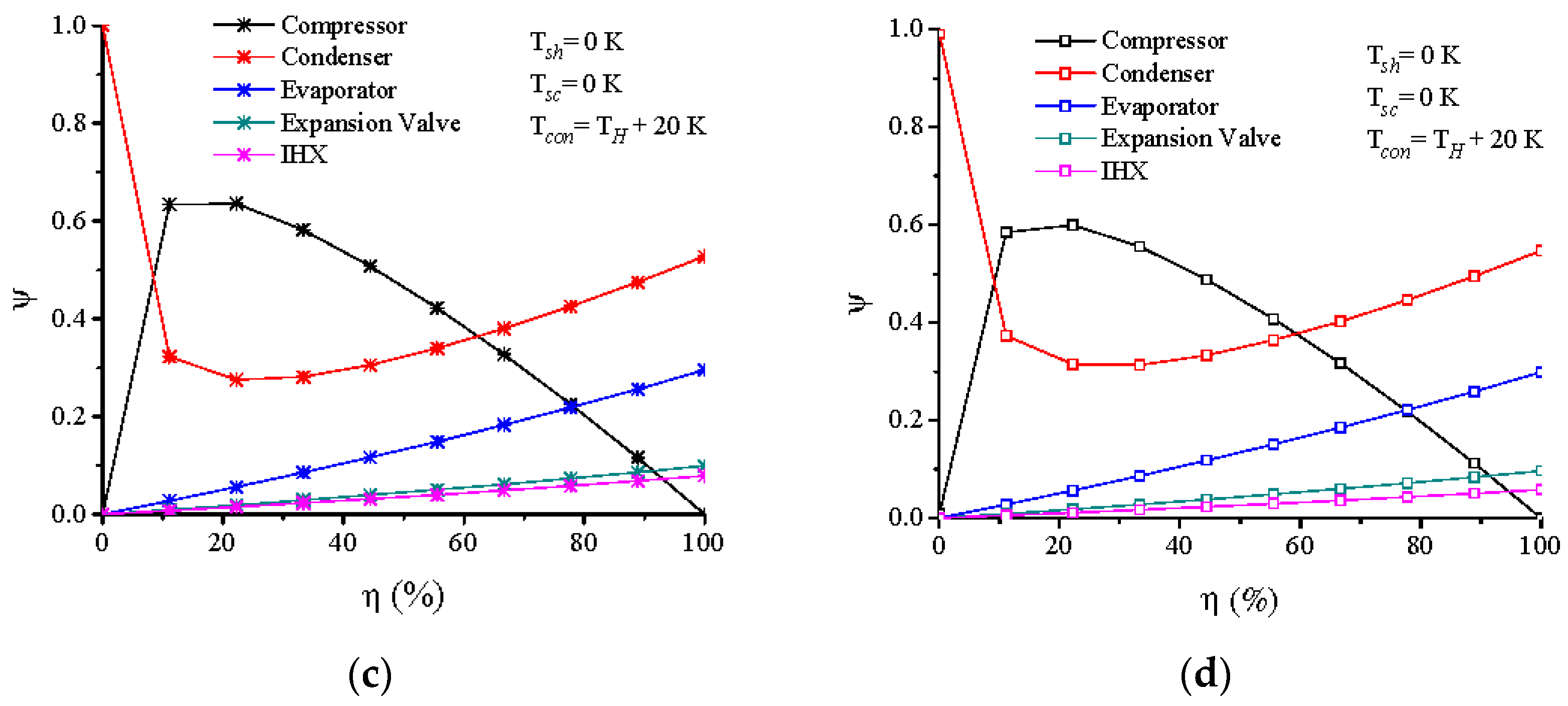 3.3. Isentropic Efficiency and Effectiveness IHX Influence