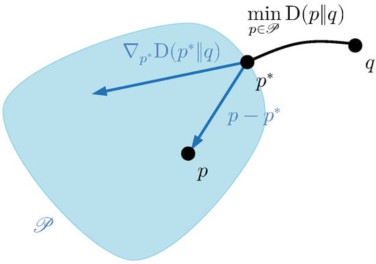 This problem is represented in Figure 1. The solution is called the information projection of q onto . Because for such the projection of the gradient of the objective onto the vector difference for any must be nonnegative, i.e.,