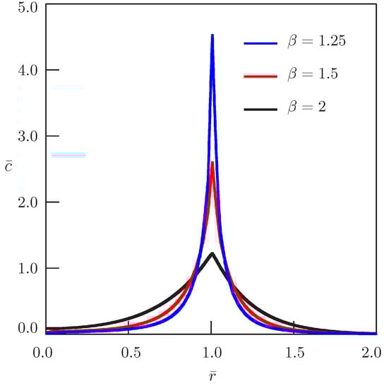 The results of numerical calculations are shown in Figure 5 and Figure 6, where the nondimensional concentration is defined as