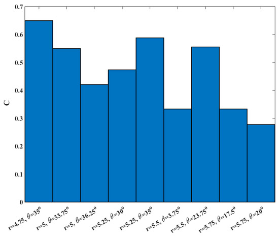 To examine the accuracy of the calculated committor, we considered 9 milestones that have committor values close to 0.5 (0.47 < C < 0.53). Since the systems is large and the simulations are expensive we have a limited statistics for this test. At each milestone we conducted 20 simulations until the trajectories reach the product or the reactant states. Then committor values are estimated by averaging over the results for each milestone. The results are shown in Figure 8.