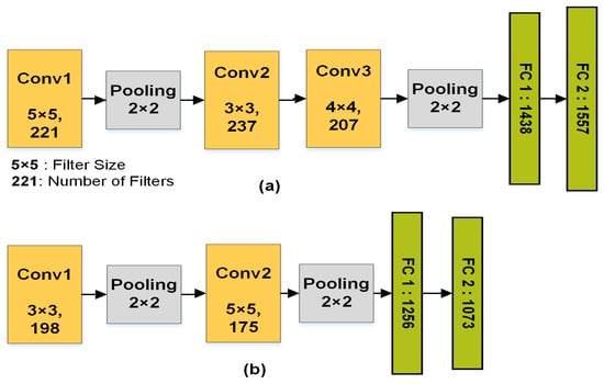 The performance of learning algorithms, such as CNNs, is critically sensitive to the architecture design. Determining the proper architecture design is a challenge because it differs for each dataset and therefore requires adjustments for each one [19,20]. Many structural hyperparameters are involved in these decisions, such as depth (which includes the number of convolutional and fully-connected layers), the number of filters, stride (step-size that the filter must be moved), pooling locations and sizes, and the number of units in fully-connected layers. It is difficult to find the appropriate hyperparameter combination for a given dataset because it is not well understood how these hyperparameters interact with each other to influence the accuracy of the resulting model [21]. Moreover, there is no mathematical formulation for calculating the appropriate hyperparameters for a given dataset, so the selection relies on trial and error. Hyperparameters must be tuned manually, which requires expert knowledge [22]; therefore, practitioners and non-expert users often employ a grid search or random search to find the best combination of hyperparameters that yields a better design, which is very time-consuming given the numerous CNN design choices. Recently, researchers have formulated the selection of appropriate hyperparameters as an optimization problem. These automatic methods have produced results exceeding those accomplished by human experts [23,24]. They utilize prior knowledge to select the next hyperparameter combination to reduce the misclassification rate [25].