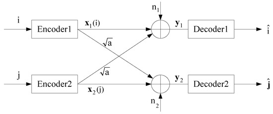 - Ahlswede, R. The capacity region of a channel with two senders and two receivers. Ann. Probab. 1974, 2, 805–814. [Google Scholar] [CrossRef]