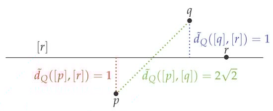 Let us take , and for some (see Figure 3). Let us suppose that a section s exists, then without loss of generality we can assume that , then we should have in other words, should be registered with respect to . For we can verify that and that this inequality is strict as soon as . Then is the only element of registered with then . Likewise for , then we should have:
