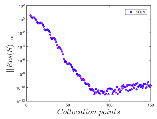 Effects of the number of collocation points number on the residual error of the nanoparticle concentration profile when , .