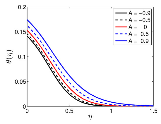 Effects of the unsteadiness parameter (A) on when ,