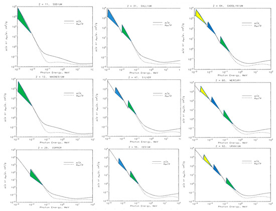 - Hubbell, J.H.; Seltzer, S.M. X-ray Mass Attenuation Coefficients, Radiation Division, PML, NIST, 2017. Available online: https://www.nist.gov/pml/x-ray-mass-attenuation-coefficients (accessed on 1 October 2016).