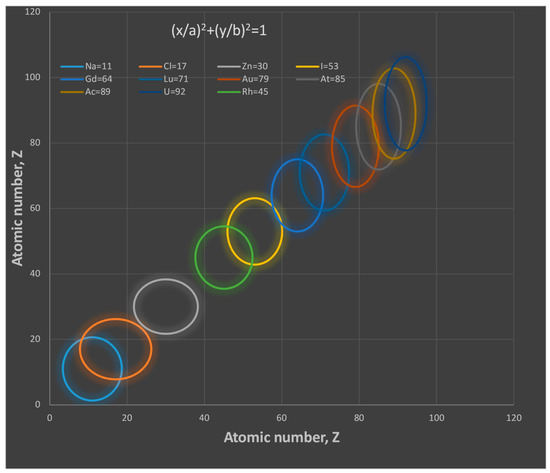 We have therefore shown that we can verify Equation (19) using NIST data for each of the elements on the periodic table. The results for ellipse axis values and the proton radius [23] can be seen in Table 1.