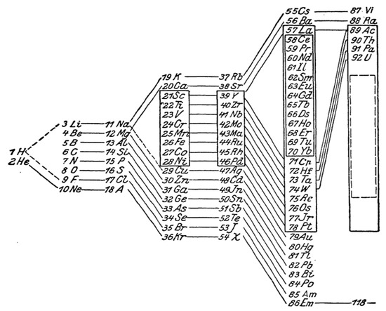 This figure shows a periodic system in relation to closed shells according to Max Born [13].