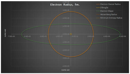 From the experimental measurement of one of the axes of the measured ellipse, let us say bi, we can calculate the average value of the same axis. This last aspect represents the minimum entropy electron (proton) radius.