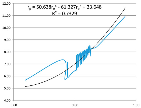 Figure 11. Functional dependence between proton and electron radii.