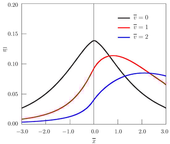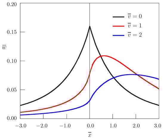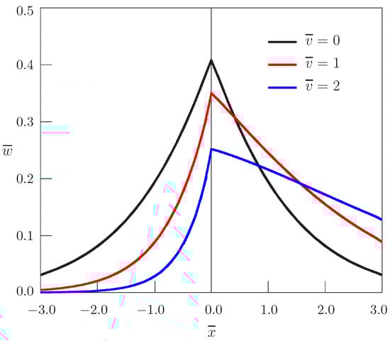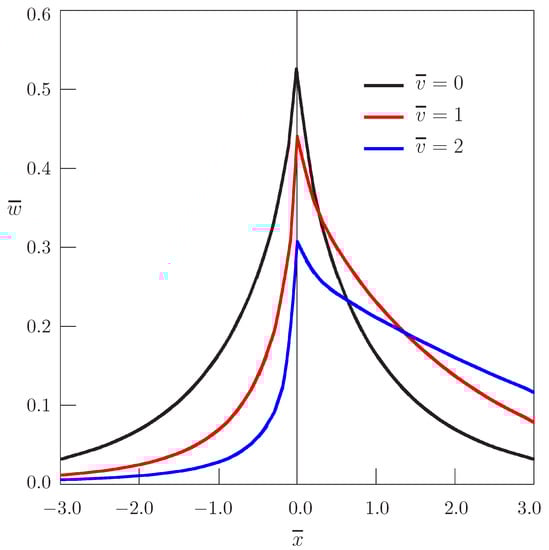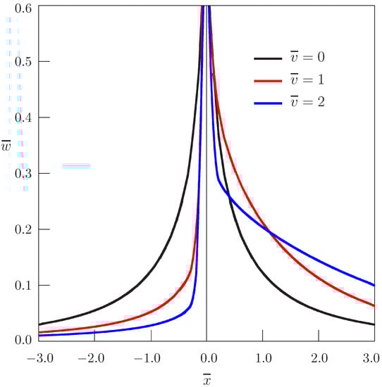 The solution (52) is shown in Figure 5 and Figure 6 for and , respectively. The nondimensional quantities are introduced as: