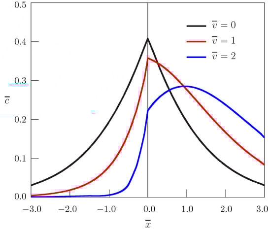 The results of numerical calculations are shown in Figure 1, Figure 2, Figure 3 and Figure 4 for different values of the orders of derivatives and and the drift parameter v. In the calculations, we have introduce the following nondimensional quantities: