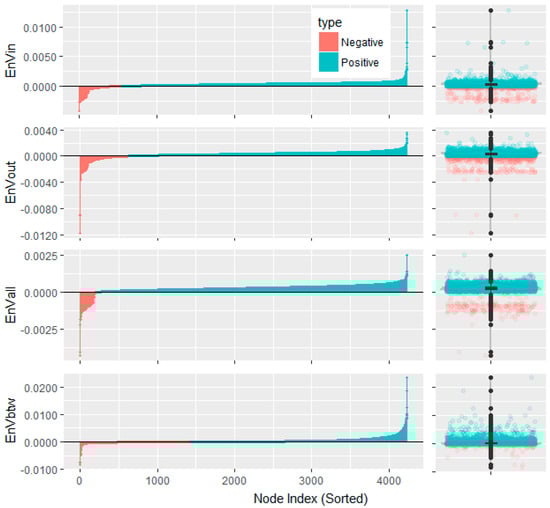We depict the entropy variation with both barplots and boxplots as in Figure 2. The height of the barplot represents the entropy variation after the removal of each node, while the boxplot can visualize the distribution of the entropy variation. The five important percentiles of these Entropy Variations are listed in Table 2.