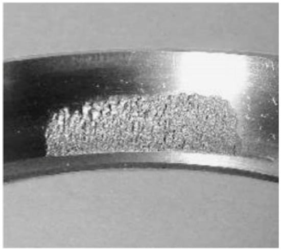 Moreover, disassembling the roller bearing and checking the running performance, the engineers found that an outer race with localized wear defect was discovered in test bearing 1 as shown in Figure 13. Indeed, it should be noted that 5860th minute is earlier than the incipient fault time 6490th minute observed in the kurtosis curves (see Figure 8b), on this occasion, the impulse features are buried in the strong background noise and are difficult to identify by the traditional kurtosis curve.