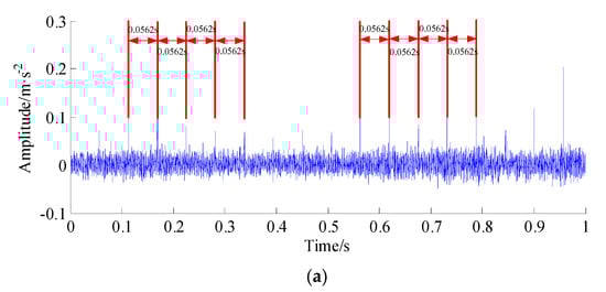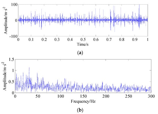 Figure 17a illustrates the time domain signal of gear pair without any preprocessing. Figure 17b shows envelope spectrum of the raw signal. From Figure 17b, it has no distinctive fault frequency, which was buried in the strong background noise.