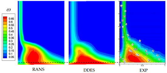 where d is the distance to the nearest wall, and the complete definition can be found in [29]. The Detached Eddy Simulation (DES) method [30] uses the Unsteady Reynolds-Averaged Navier–Stokes (URANS) model in the near wall region and switches to the LES model far from the wall. The DES method replaces d in the destruction term of the S-A model, in Equation (1), with defined as , where ▵ is the largest spacing of the grid cell in all directions. When , , and the model acts as the S-A model. When , , and the model switches to the LES algorithm. To deal with the Modeled Stresses Depletion (MSD) problem, Spalart et al. [23] improved the DES model, and the new Delayed Detached Eddy Simulation model (DDES) uses a formulation to limit the DES length scale to ensure that the transition is mesh-independent. The parameter used in the original S-A model is modified to: