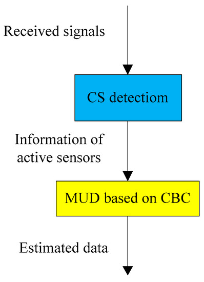 where dactive contains the transmitted symbols of active sensors, A2 has the same form as A in Equation (1) except that it only includes interleaved spreading sequences and channel influence for active sensors. Then, CBC algorithm can be implemented to realize active data detection.
