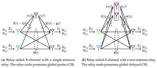 - Nourani, B.; Motahari, S.A.; Khandani, A.K. Relay-aided interference alignment for the quasi-static X channel. In Proceedings of the 2009 IEEE International Symposium on Information Theory, Seoul, Korea, 28 June–3 July 2009; pp. 1764–1768. [Google Scholar]
