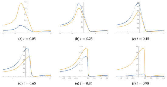 and denote respectively the measures of the process solution of (1) with drift and of the Wiener process . The expectation value on the right-hand side is with respect to as elsewhere in the text. A now well-established result in optimal control theory (see, e.g., [35,36]) is that the optimal value of the drift satisfies a backward Burgers equation with the terminal condition specified by the solution of the Beurling–Jamison integral equations. We refer to [35,36] for further details. What interests us here is to emphasize the analogy with the problem of minimizing the entropy production in a transition between assigned states.