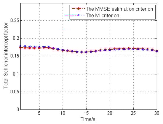 Total Schleher intercept factor by employing the MMSE estimation criterion and the MI criterion.