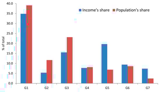 Figure 1. The nature of the different incomes associated with individuals in the different categories, G1 to G7.