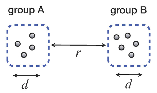 For simplicity of analysis, we assume the distance between two groups is r, and the distance between two detectors belonging to the same group is d (see Figure 1). We denote possible states of detectors after evolution as follows: