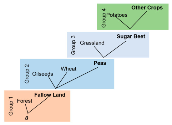 Linking the groups’ boundaries enables a clear upward/downward structure among groups, as depicted in Figure 2 for four groups. The first group comprises of Forest and Fallow Land, the crops with clearly smaller allocation bases (e.g., for machinery costs) than Oilseeds, Wheat, and Peas, which constitute Group 2. The latter is surpassed by the allocation bases of Grassland and Sugar Beet, which build Group 3. Finally, Group 4 includes Potatoes and Other Crops. However, the grouping might be different for other indirect cost items, such as labour.