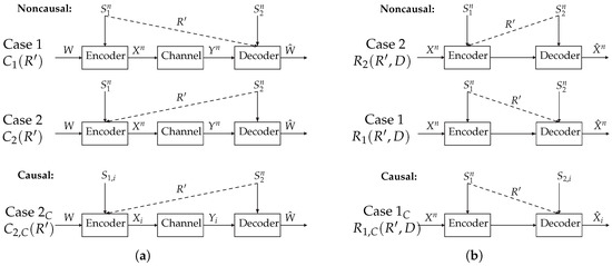 - Case 1: Similar to Case 1, with the exception that the ESI is known to the encoder in a causal manner. The rate-limited description of the ESI is still known to the decoder noncausally.