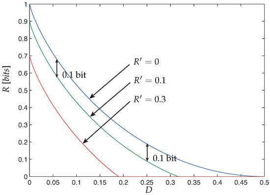 - Wyner, A.; Ziv, J. The rate-distortion function for source coding with side information at the decoder. IEEE Trans. Inf. Theory 1976, 22, 1–10. [Google Scholar] [CrossRef]