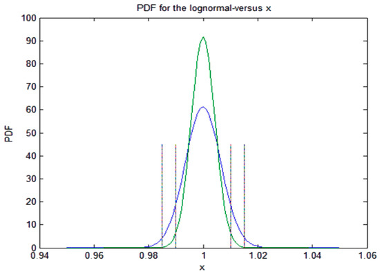 Therefore, from Equations (A26) and (A27), it is deduced . Finally, we obtain the PDF given by the expression