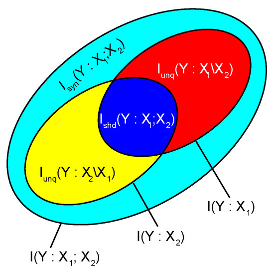 Decomposition of the joint mutual information between two input variables , and the output variable Y. Modified from [17], CC-BY license.