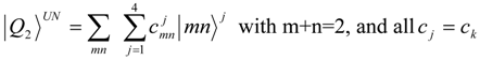 The superposed quantum states in eq. (2.5) can be obtained by the action of the unitary operator: