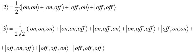 We will call these Hilbert spaces HN. The basis states are the 2N strings of lenght N (for example: |0,0⟩ |0,1⟩ |1,0⟩ |1,1⟩ for N=2).