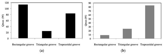 3.1.3. Influence of the Microgroove Shape on the Maximum Heat Flux