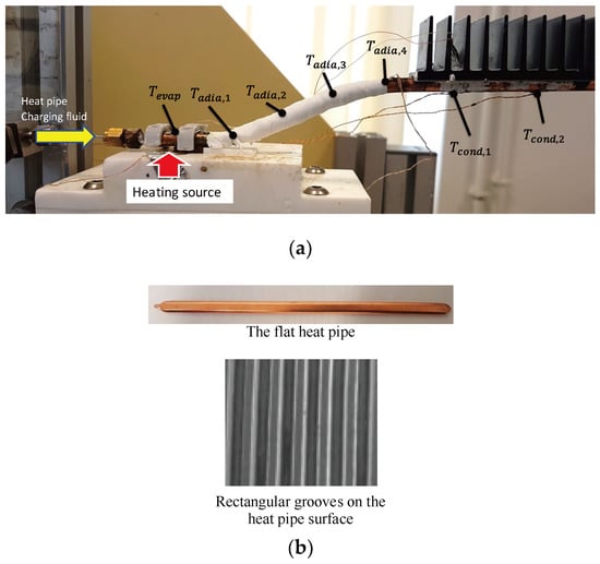 - Khrustalev, D.; Faghri, A. Thermal Characteristics of Conventional and Flat Miniature Axially Grooved Heat Pipes. J. Heat Transf. 1995, 117, 1048–1054. [Google Scholar] [CrossRef]