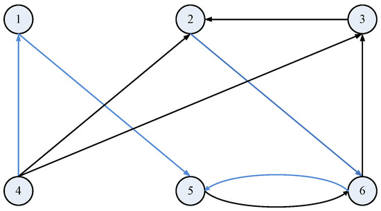 where , , . The topological structure of the network (14) is denoted by the matrix C which is shown as Figure 2.