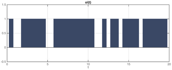 From Figure 3, it is obvious to tell that the dynamical error variables between corresponding nodes in the original and observer networks just take a little time to converge to zero under the influence of random incomplete measurements of transmitted output variables. The evolution of the stochastic process is shown in Figure 4, which indicates a common situation of incomplete measurements in the unreliable communication channel.