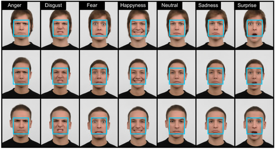 - Mollahosseini, A.; Hasani, B.; Salvador, M.J.; Abdollahi, H.; Chan, D.; Mahoor, M.H. Facial Expression Recognition from World Wild Web. In Proceedings of the IEEE Conference on Computer Vision and Pattern Recognition (CVPR) Workshops, Seattle, WA, USA, 27–30 June 2016. [Google Scholar]