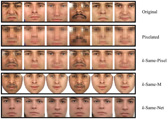 Many extensions of the above approach have been proposed in the literature focusing mainly on improving the naturalness of the deidentified faces and preservation of as much of the non-identity-related information in the original images as possible. These include the k-Same-Eigen [1], k-Same-Select [2], k-Same-furthest-FET (FET stands for Facial Expression Transfer) [37], k-Diff-furthest (“Diff” in method name denotes that this method generates different deidentified face for each of the k original faces in a cluster) [38], k-SameClass-Eigen [39] and GARP-Face (“GARP” stands for Gender, Age, Race attribute Preservation) [40] algorithms, to name a few. A high-level overview of these algorithms is given in Table 1. For more information on face deidentification, the reader is referred to [41], where a recent survey on this topic is presented.