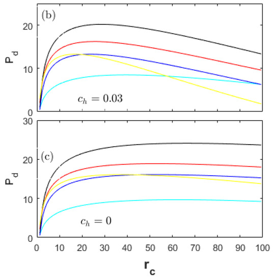 A heat-transfer weight coefficient multiplied by the heat-transfer term in Equation (22), is defined to weigh the importance of the heat-transfer losses in the total input energy. Figure 2, Figure 3 and Figure 4 demonstrate the performances of the five thermodynamic cycles in Table 1 at different heat-transfer weights. The subfigures (a) in Figure 2, Figure 3 and Figure 4 show the performances of normal conditions with ; the subfigures (b) and (c) show the performances with lower heat-transfer weights in order to investigate the performance difference at different heat loss degrees.