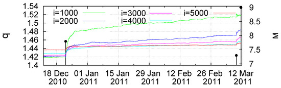 - Papadakis, G.; Vallianatos, F. Non-extensive statistical physics analysis of earthquake magnitude sequences in North Aegean Trough, Greece. Acta Geophys. 2017, 65, 555–563. [Google Scholar] [CrossRef]
