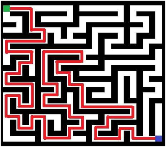 It should be mentioned that one of the best known approaches to maze generation is to apply graph theory. Each unit square constitutes a vertex and each path between two adjacent squares represents an edge. Consequently, edges exist only between the adjacent vertices. We should notice that we can pass to the adjacent vertex if there is an edge in between. Kruskal’s algorithm developed in [21] is frequently used for generating mazes. Another algorithm often quoted in the literature is Prim’s algorithm [22]. Moreover, Depth-First Search (DFS) is one of maze-generating algorithms: it is possible to build a maze upon assumption of a search space as a two-dimensional grid, with squares as vertices and passages to the adjacent squares as edges, as well as a random selection of the adjacent square to be visited. For a comprehensive description on DFS, see [23]. Another interesting method, which generates mazes, is an algorithm to construct vortex mazes with aesthetic effects [24].