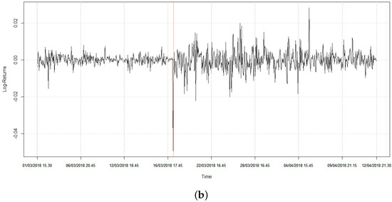 From the original sample of log-returns, we extract two subsamples consisting of 311 observations each. The first subsample, starting on 1 March 2018, contains the available observations before the break out of CA scandal, whereas the second subsample, starting on 19 March 2018, fully contains the early effects of CA scandal.